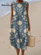 Women's Vintage Interesting Simple Drinking Cat Art Print Flowy Dress