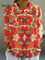 Women's Vintage Poppy Flower Art Print Casual Cotton And Linen 3/4 Sleeve Shirt