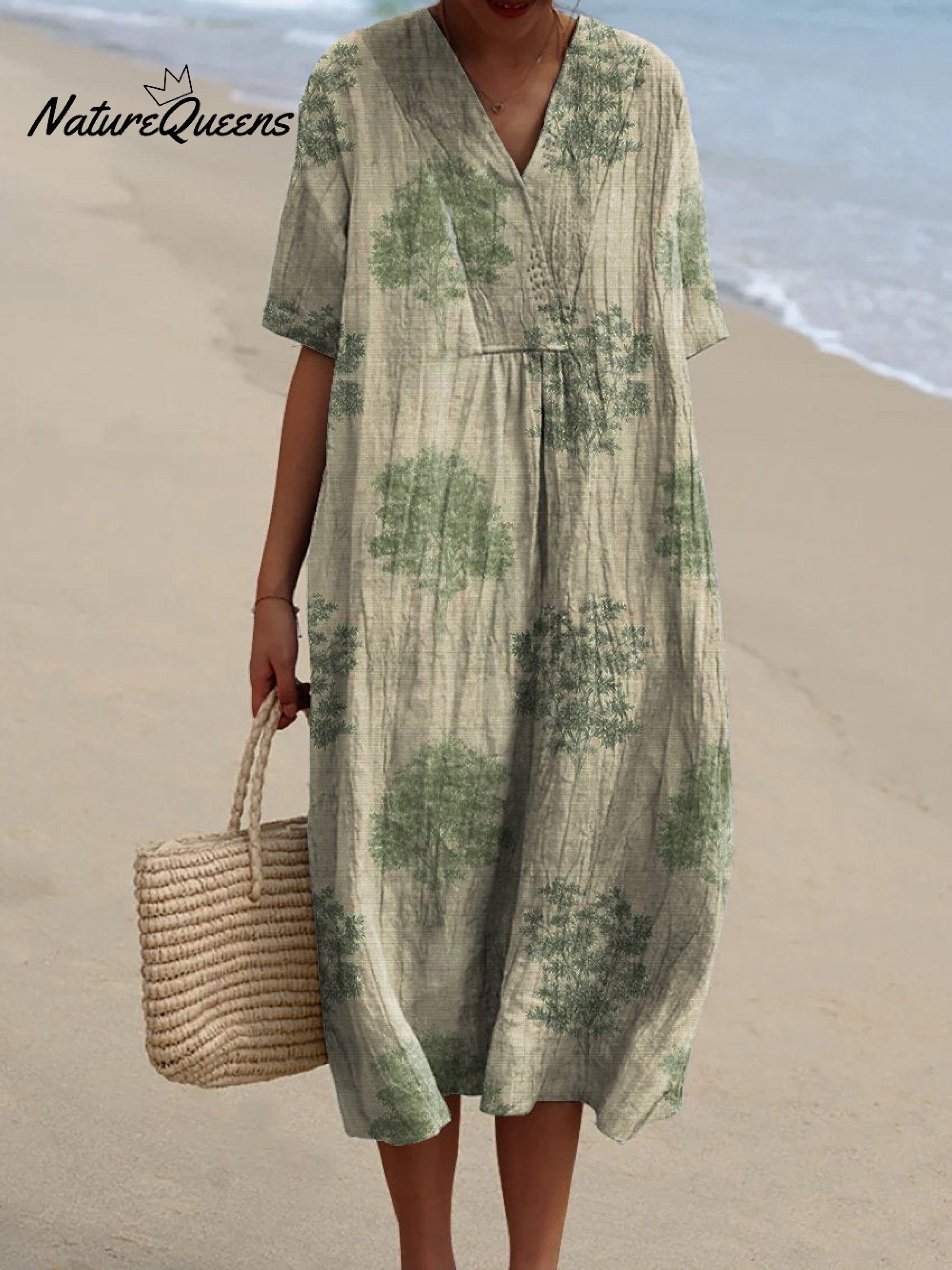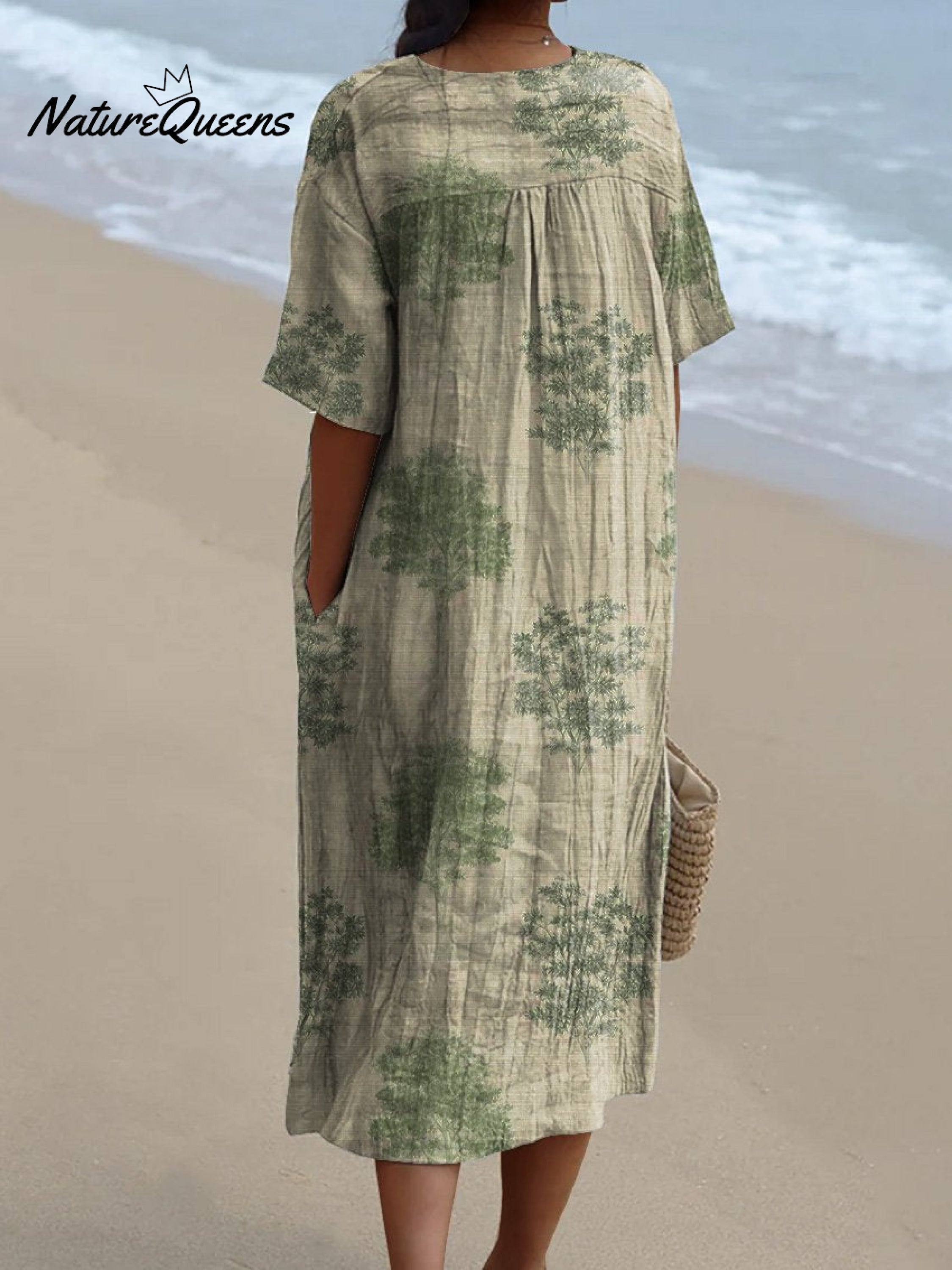 Women's Vintage Style Tree Repeat Pattern Printed Flowy Dress