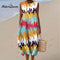 Women's White Floral Print On Blue Background Print Pocket Linen Dress(Convertible Dress With Front And Back Option)