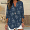 Distinctive Floral Print V - Neck Navy Top