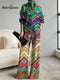 Women's Abstract Geometric Pattern Art Print Casual 100% Cotton Wide Leg Jumpsuit
