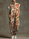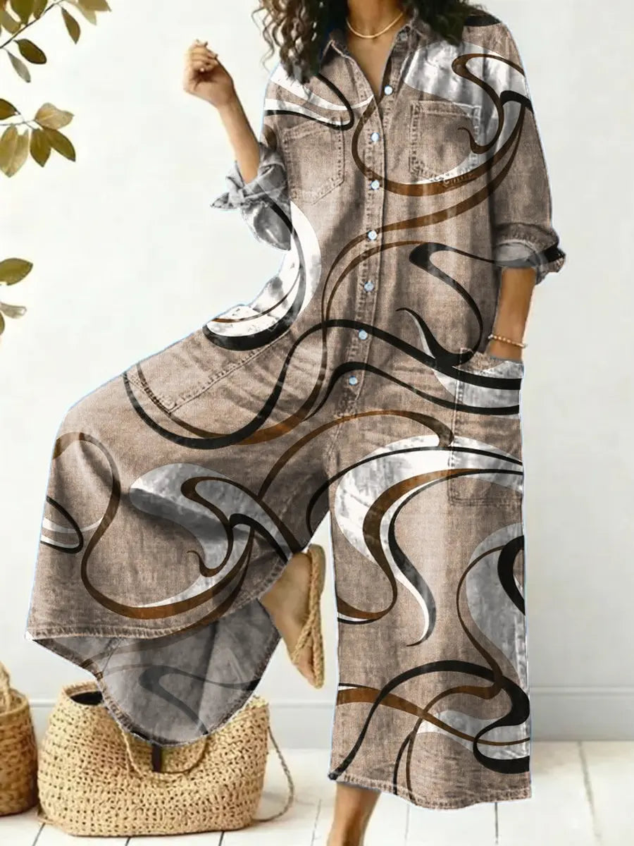 Women's Abstract Line Pattern Art Print Casual Cotton Denim Jumpsuit