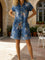 Women's Artistic Flowers Print Casual Cotton Denim Jumpsuit