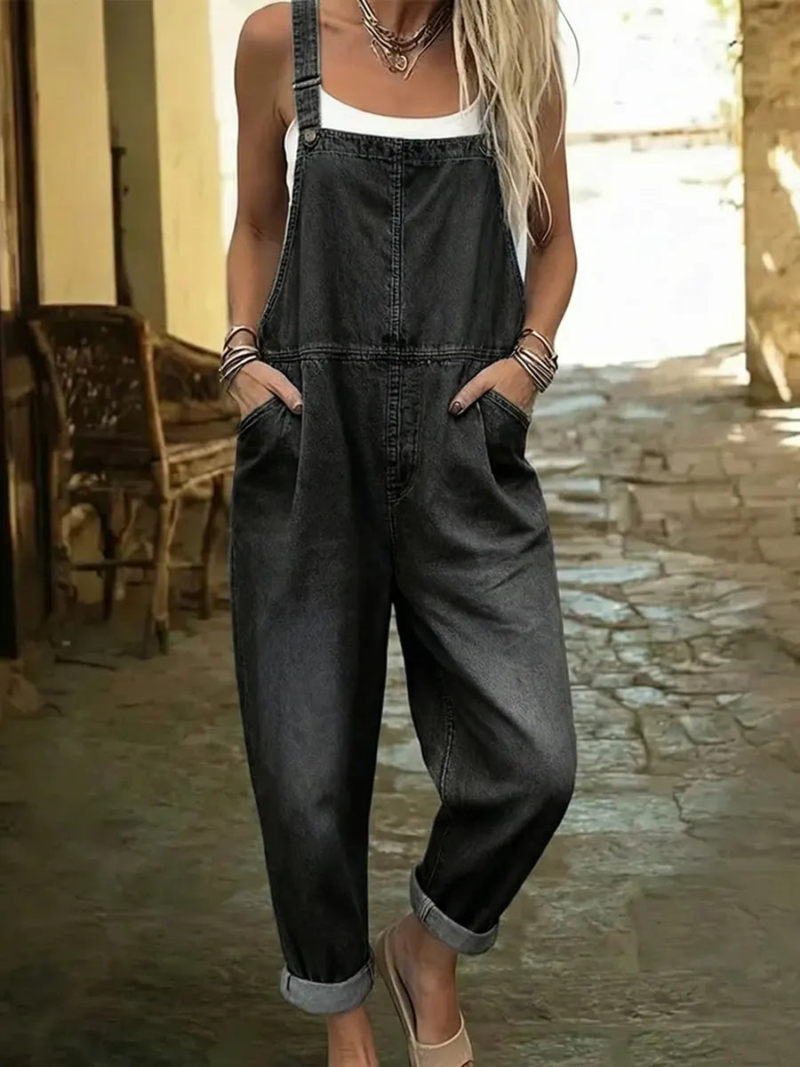 Women's Casual And Fashionable Cotton Denim Jumpsuit