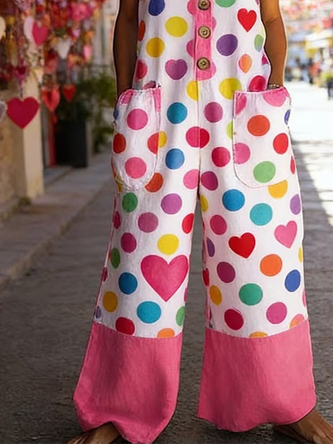 Women'S Casual Color-Block Pattern Printed Jumpsuit