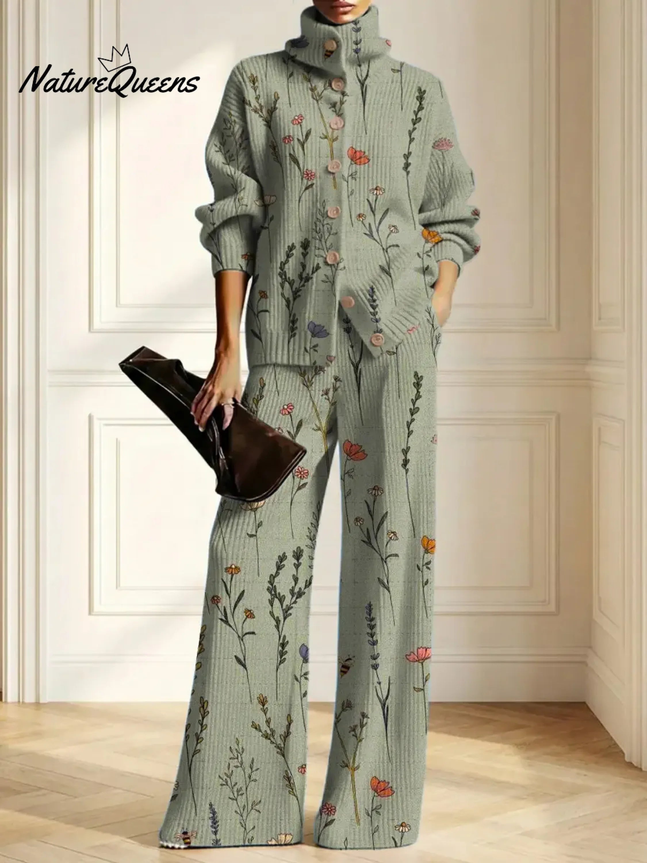 Women's Floral Pattern Art Print Casual Cotton Knitted Suits