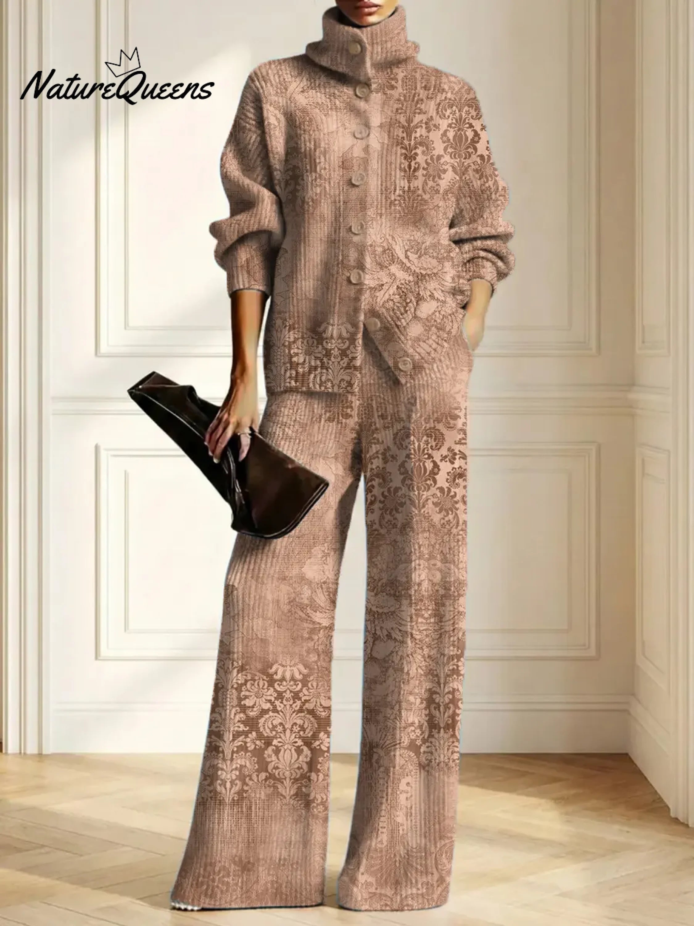 Women's Floral Pattern Art Print Casual Cotton Knitted Suits
