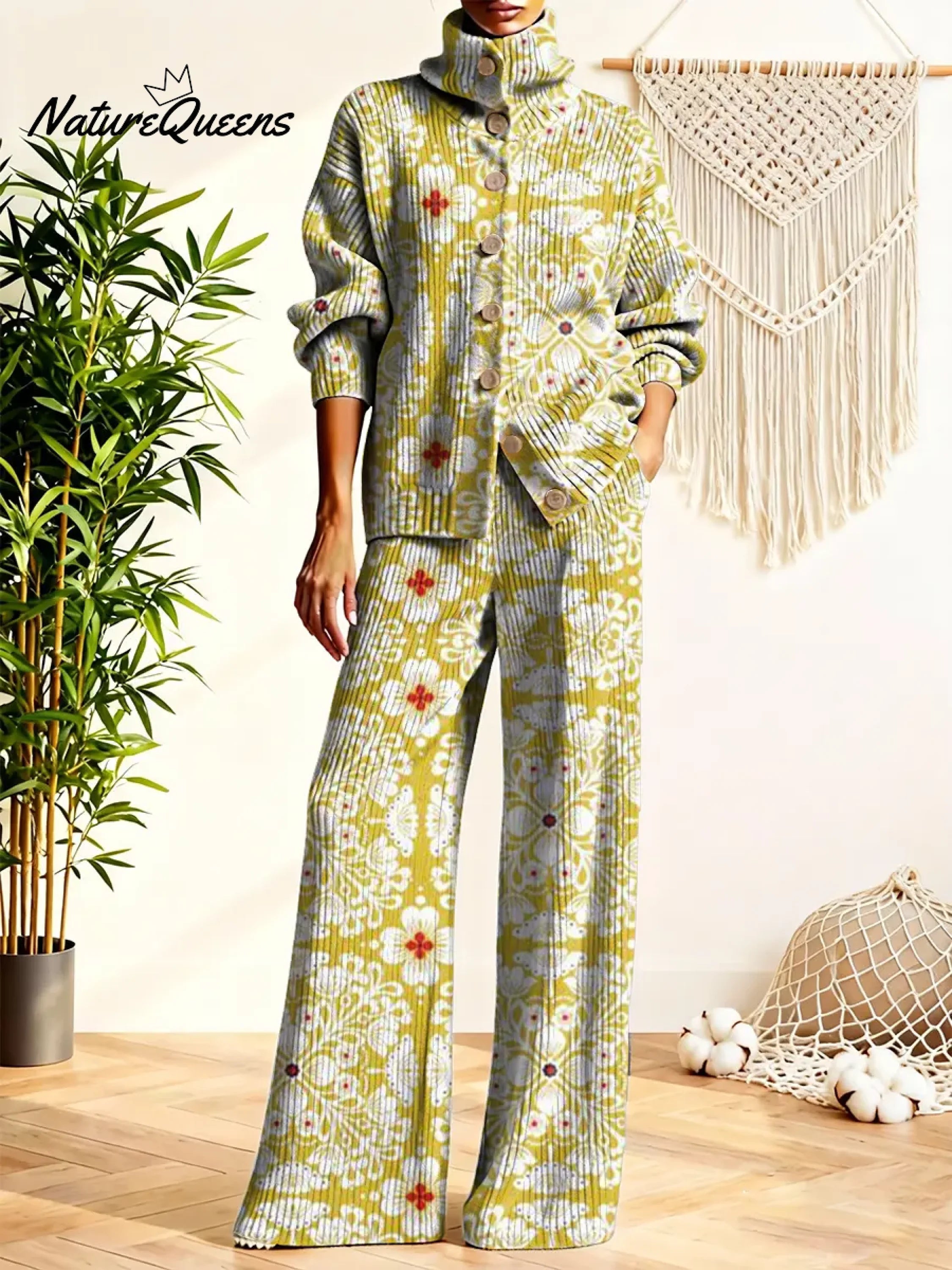 Women's Floral Pattern Art Print Casual Cotton Knitted Suits