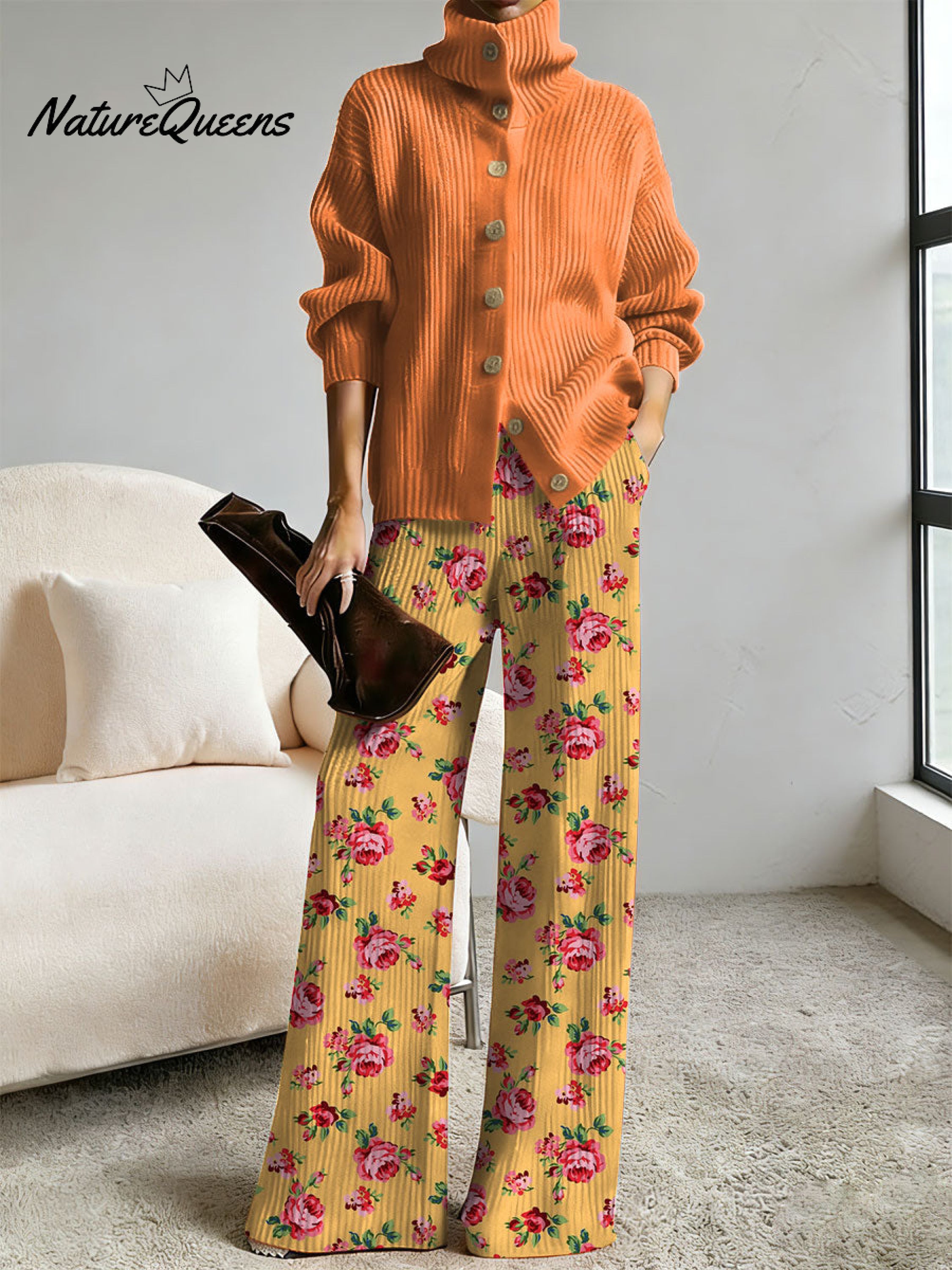 Women's Floral Pattern Art Print Casual Cotton Knitted Suits