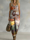 Women's Gradient Vintage Plaid Print Casual Denim Jumpsuit