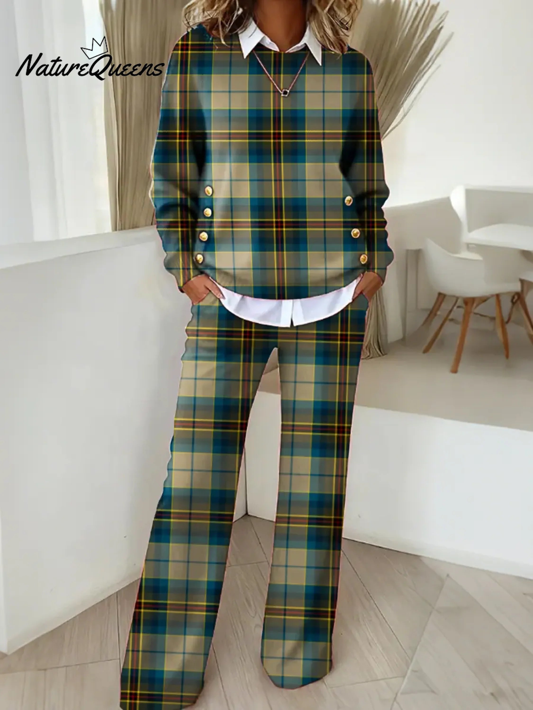 Women's Plaid Pattern Art Print Casual Cotton Knitted Suits
