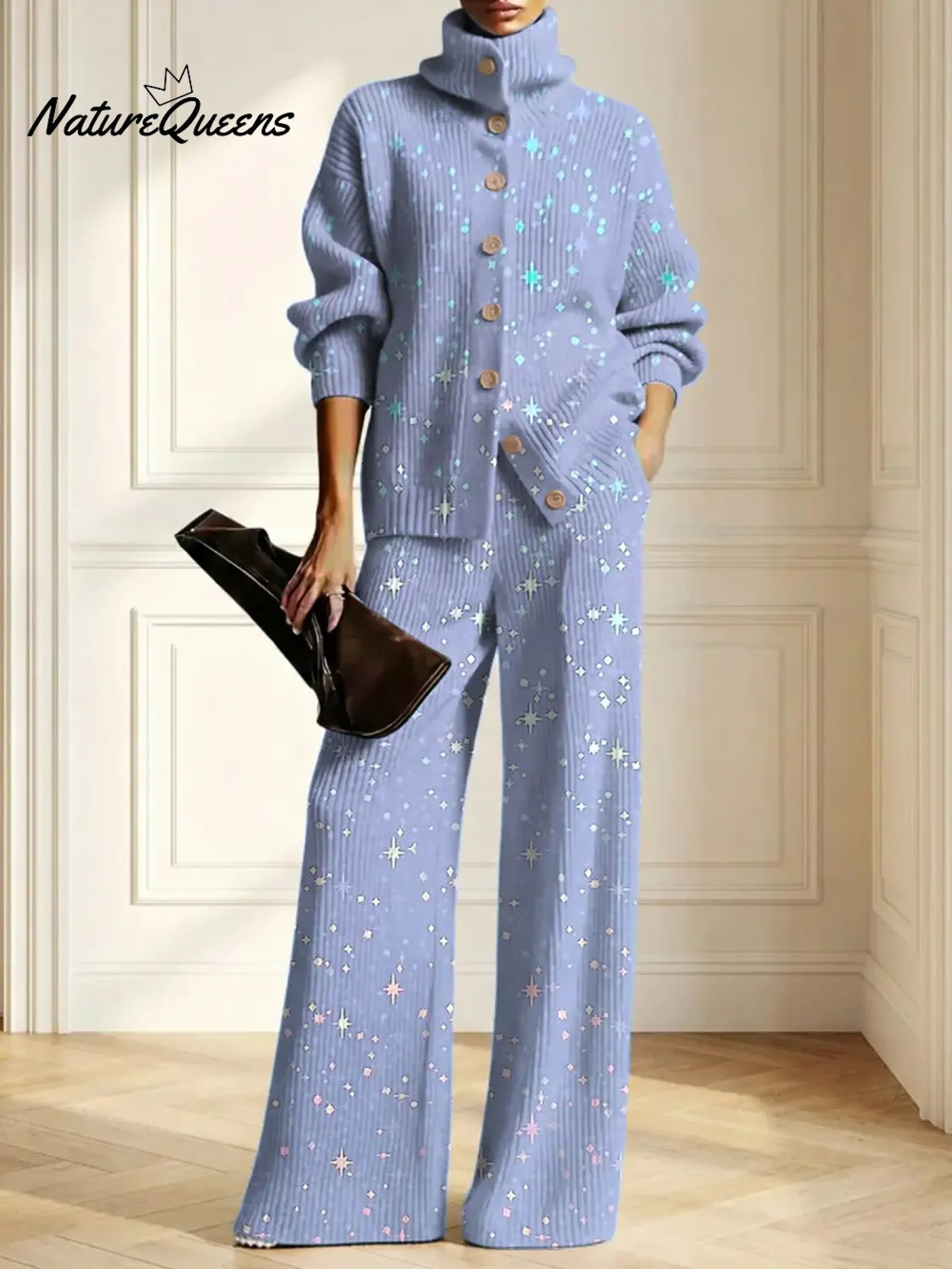 Women's Shiny Pattern Art Print Casual Cotton Knitted Suits