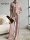 Women's Solid Color Casual Loose Stylish V-neck Long-sleeved Top Pocket Pants Two Piece Suit