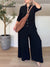 Casual Two-Pieces Outfits Solid Color Casual Top Loose Bootcut Trousers Pants Sets