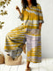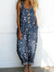 Women's Vintage Art Print Casual Cotton Denim Jumpsuit