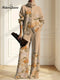 Women's Vintage Flowers Art Print Casual 100% Cotton Wide Leg Jumpsuit