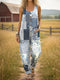 Women's Vintage Funny Chicken Art Print Casual 100% Cotton Wide Leg Jumpsuit