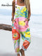 Women's Vintage Geometric Lines Art Print Casual 100% Cotton Wide Leg Jumpsuit