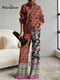 Women's Vintage Pattern Art Print Casual Cotton Knitted Suits