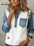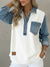 Casual Denim Patchwork Hooded Sweatshirt Top