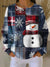 Women's Christmas Snowman Pattern Art Print Casual Waffle Sweatshirt