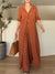 Women's V-neck Cotton And Linen Solid Colour Loose Mid-Sleeve Shirt