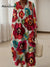 Bright And Large Floral Decorative Pattern Women's V-collar Long Sleeve Dress