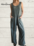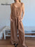 Casual Back Button Tie Linen Solid Color Jumpsuit