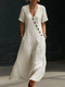 Casual Cozy Back Button Design Linen And Cotton Two-piece Set
