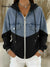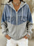 Casual Patchwork Denim Hooded Zip-up Cotton Sweatshirt