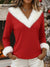 Christmas Elegant V-Neck Faux Rabbit Fur Trim Knit Top