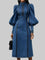 Fashionable Patchwork Leather Lantern Sleeve Denim Dress