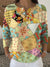 Flower Splicing Pattern Art Print Buttoned Cardigan Sweater