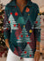 Retro Christmas Trees Snowflake Art Pattern Polo Collar Shiny Loose Sweater Top