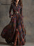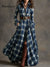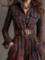 Retro Ethnic Style Lapel Reddish Brown Plaid Maxi Dress