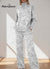 Simple Line Drawing Of Flowers And Plants Decorative Patterns Casual Stand Collar Long Sleeve Top And Pants