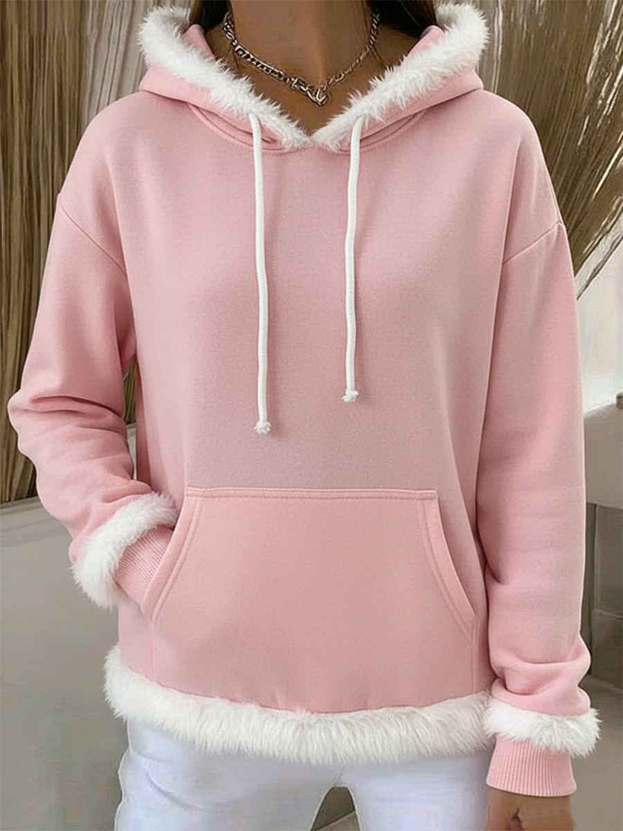 Vintage Christmas Faux Rabbit Fur Collar Hooded Sweatshirt