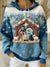 Vintage Christmas Print Casual Knitted Hoodie Sweater