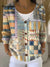 Vintage Geometry Art Print Buttoned V-neck Cardigan Sweater
