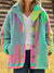 Women's Beautiful Colorful Abstract Geometric Color Block Painting Art Print Casual Sherpa Coat Cardigan