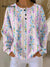 Women's Beautiful Colorful Floral Stripe Art Print Casual Cotton Shirt