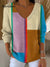 Women's Beautiful Colorful Striped Painting Art Print Casual Pullover Sweater