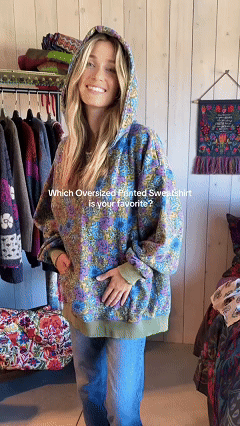 Women's Boho Floral Print Colorblock Cuff Cotton Hoodie