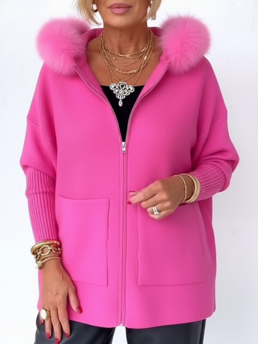 Women's Casual Hooded Pocket Zipper Knitted Cardigan Jacket