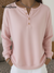 Women's Casual Solid Color Button Henley Collar Cotton Sweatshirt