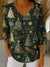 Women's Christmas Print V-Neck 3/4 Sleeve Casual Loose Knit Pullover