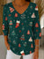 Women's Christmas Print V-Neck Three-Quarter Sleeve Casual Sweater