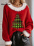 Women's Christmas Tree Print Fur Collar Knit Top