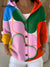 Women's Colorful Abstract Geometric Block Painting Art Print Casual Hooded Button Sweater